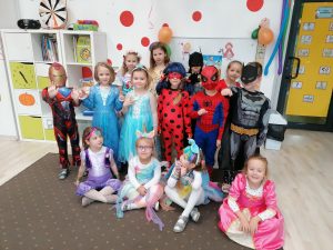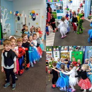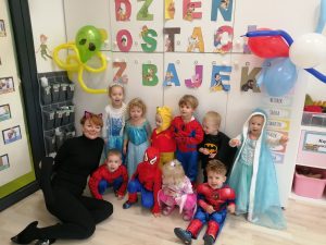 W piątek 6 listopada w przedszkolu obchodziliśmy Dzień Postaci z Bajek. We wszystkich grupach było kolorowo i wesoło. Każdy przedszkolak w tym dniu zamienił się w bajkową postać. Dzieciaki brały udział w przygotowanych przez nauczycielki zabawach, konkursach oraz tańcach. Dodatkowym atutem tego dnia był zdrowy poczęstunek.