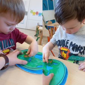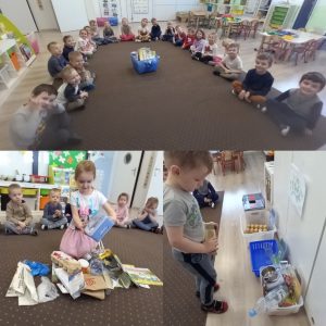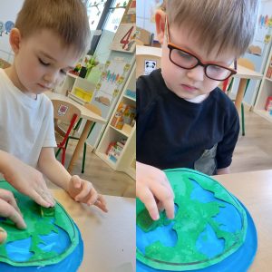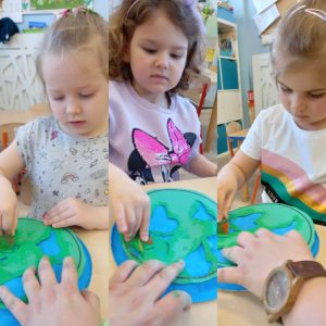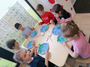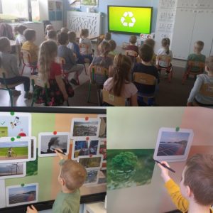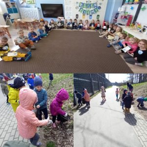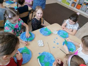 Nasze przedszkolaki już od najmłodszych lat, uczą się jak żyć ekologicznie, zgodnie z naturą. W tym dniu zastanawiały się i poszukiwały odpowiedzi jak chronić Ziemię, by pomóc Jej, aby była czysta, zdrowa i piękna. Dzieci w ramach zadań dowiedziały się co szkodzi jej, niszczy ją. Poznały znaczenie recyklingu oraz upcyklingu. Wypowiadały się na temat: Gdzie wolałyby wybrać się na spacer: czy nad łąkę, a może jednak do miasta, gdzie jest dużo dymu, spalin. Jednomyślnie wolą spędzić czas na kolorowej łące.
