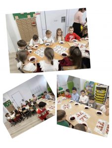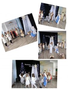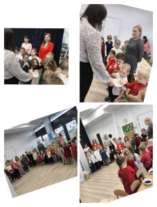 Dzieci wystąpiły przed rodzicami, a Zajączki zaprezentowały się również przed całą społecznością przedszkolną😊 Następnie wszystkie dzieci w magicznym nastroju zasiadły do wigilijnego stołu.
