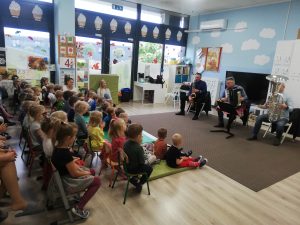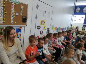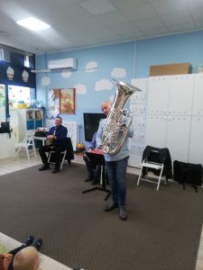 Odwiedzili nas muzycy z Filharmonii Warmińsko-Mazurskiej w Olsztynie. Mali słuchacze zapoznali się z nazwami instrumentów i ich charakterystyką. Było uważne słuchanie muzyki, głośne śpiewy i rytmiczne brawa. Dzieci były zachwycone!